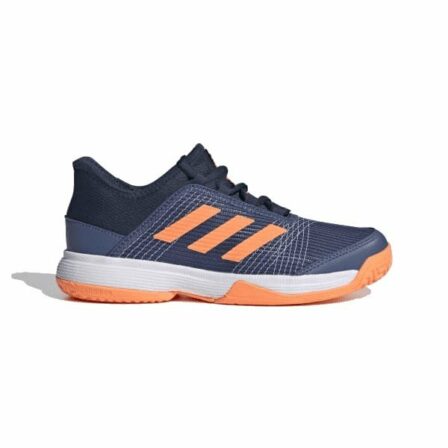 Adidas Adizero Club tyylikkään sinisessä värissä, jossa on oransseja yksityiskohtia. Suunniteltu erityisesti padelia tai tennistä pelaaville lapsille ja nuorille.
