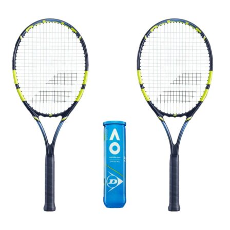 Erinomainen pakettitarjous, joka sisältää kaksi Babolat-tennismailaa ja yhden pallotuubin!