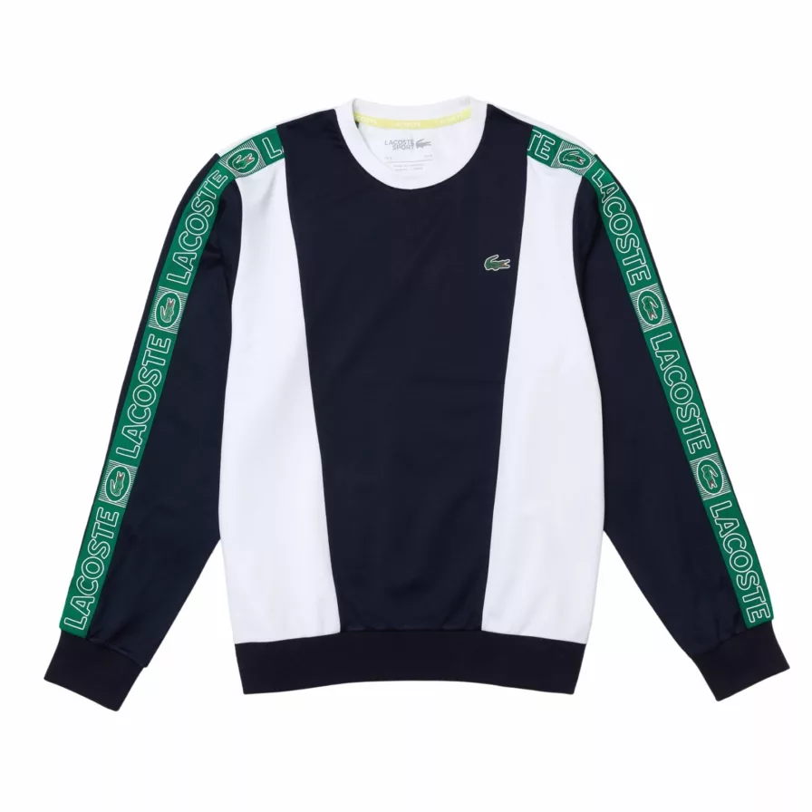 Tässä Lacosten collegepaidassa on rohkea design, ja se on valmistettu 100 % kierrätetystä polyesteristä. Tämä takaa erinomaisen hengittävyyden, keveyden ja mukavuuden. Sen designille on ominaista syvän tummansininen väri ja klassinen valkoinen. Lisäksi hihoissa on tyylikäs ja värikäs raita.