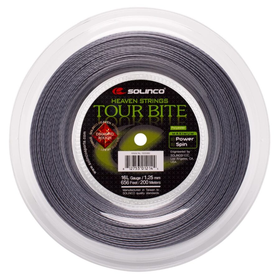 Tour Bite Diamond Rough on kehitetty pelaajille, jotka haluavat äärimmäistä kierrettä ja aggressiivista pelityyliä. Jänne on valmistettu Solincon innovatiivisella Diamond Rough -tekstuurilla, joka antaa lisäpitoa palloon ja helpottaa voimakkaan topspinin tuottamista. Edistynyt co-polyester-monofilamenttirakenne tarjoaa samalla hyvää voimaa, vakaata kontrollia ja korkeaa kestävyyttä. Karhean pinnan ja materiaalin ominaisuuksien yhdistelmä parantaa myös pallokontaktia ja antaa suoremman tuntuman lyönteihin. Tämä 200 metrin rulla on ihanteellinen pelaajille, valmentajille tai seuroille, jotka jänteyttävät useita tennismailoja itse.