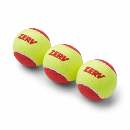 Tässä ZERVin punaisessa Play & Stay -pallossa on 75 prosenttia vähemmän painetta kuin tavallisessa tennispallossa. Tämä paineen alentaminen tekee pallosta ihanteellisen 0-7-vuotiaille lapsille, sillä pallo on paljon hitaampi ja pehmeämpi pelata.